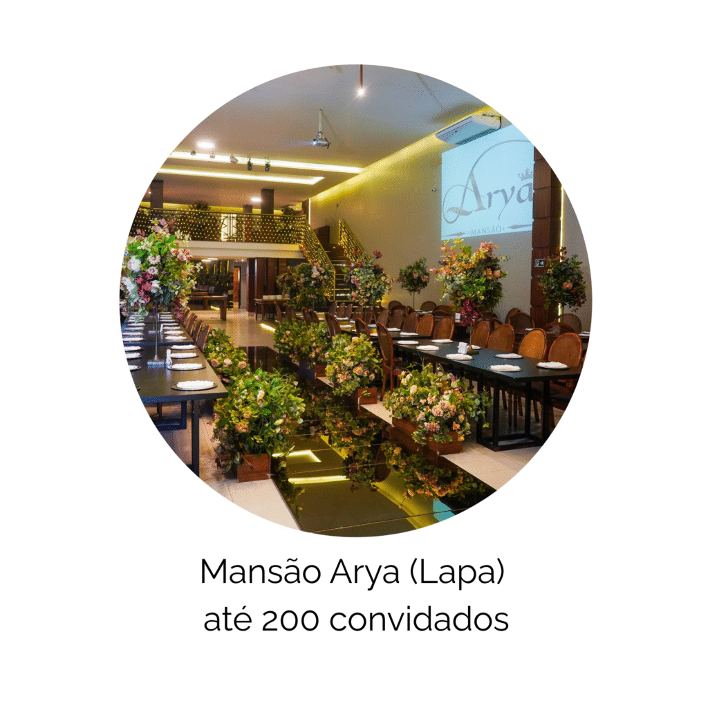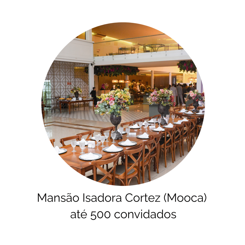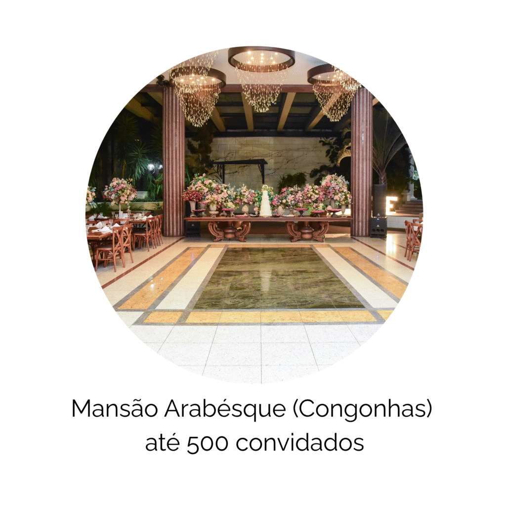 Inclui: 5 horas de evento, coordenação do dia, salão e mobiliário de alto padrão, buffet completo conforme menu, decoração mesa do bolo/convidados com flores permanentes nobres, equipe completa (recepção, garçons, limpeza, segurança), DJ, som e iluminação cênica, bebidas não alcoólicas.