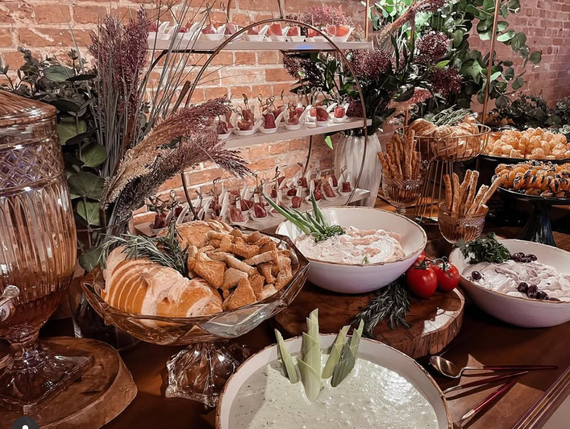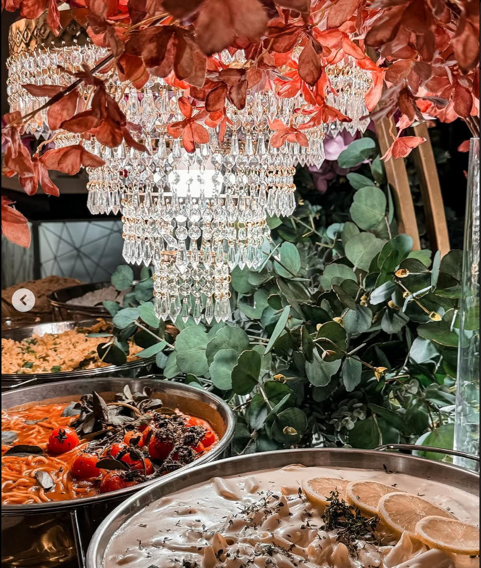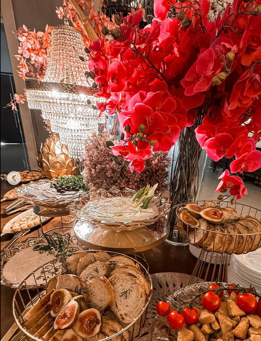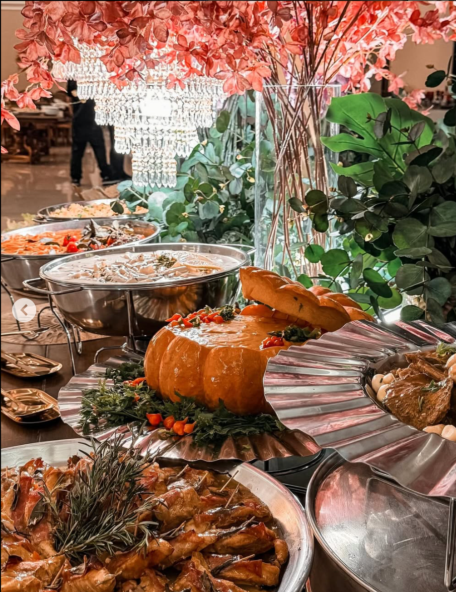 Buffet completo conforme menu escolhido, 5h de evento, coordenação, salão e mobiliário, decoração mesa do bolo e dos convidados com flores permanentes nobres, equipe completa, DJ, som e iluminação cênica, bebidas não alcoólicas.